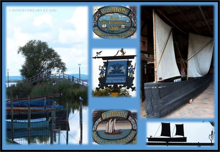 Die Möglichkeiten Steinhudes sind, abgesehen vom Essen und Trinken und dem Meer ... begrenzt. Wir tranken einen guten Cappuccino im Café Enghus, saßen dabei auf dem Rasen zum kleinen Bootsanleger und der Lagune gelegen, es war sonnig, es war sehr idyllisch, und überlegten, ob wir vielleicht diese leckeren Torten ... Stachelbeer mit Baiser ... Aber wir wollten ja noch die Fischbrötchen.